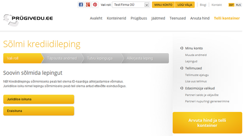 2. Vali enda roll (juriidilise isikuna, eraisikuna), kellena soovid sõlmida lepingut